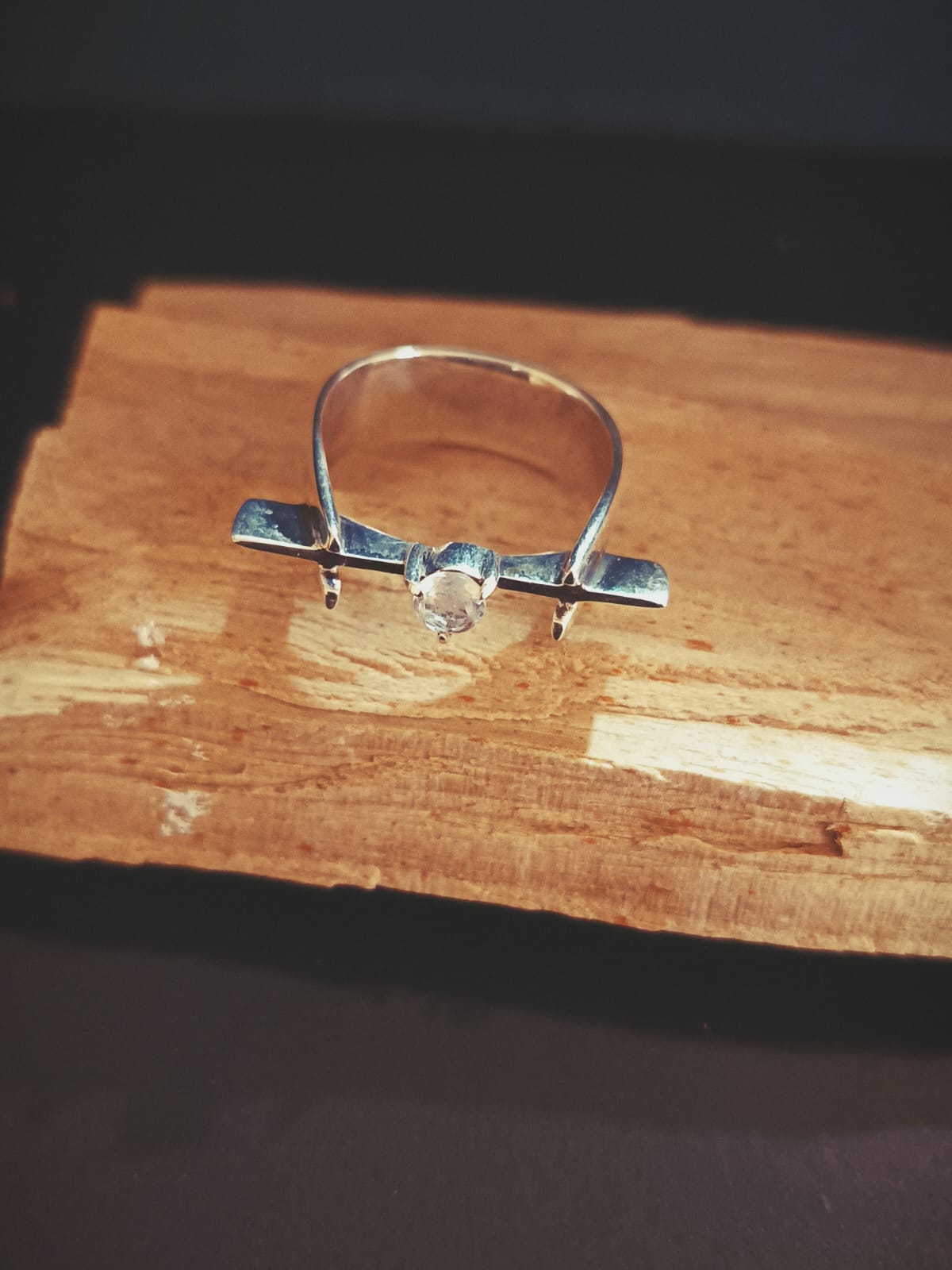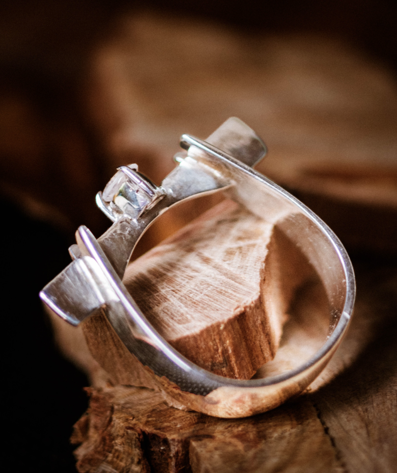 Un toque de misterio y feminidad en tu mano. Este Anillo de Plata 950 con Piedra Luna posee un diseño delicado, con montura sencilla y una lámina de plata atravesando bajo la piedra para realzar su brillo.