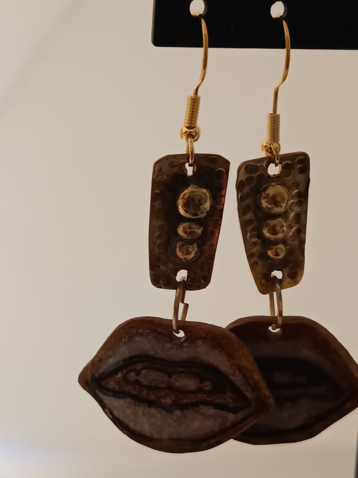 Aros artesanales de cobre martillado y arcilla orgánica, inspirados en la voz interior y el acto de cruzar umbrales personales. Una pieza boho minimal cargada de significado.